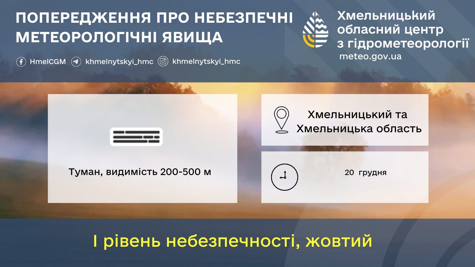 Головна » Новини » Екологія » » 20 грудня на Хмельницьку область чекає туман та слизькі дороги