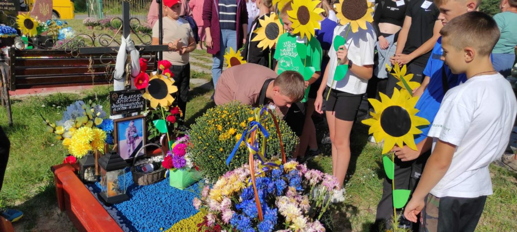 Після цього учасники акції разом із дітьми відвідали могили полеглих воїнів у селах Плужне та Хотень Перший, де поклали квіти та вшанували пам’ять героїв.