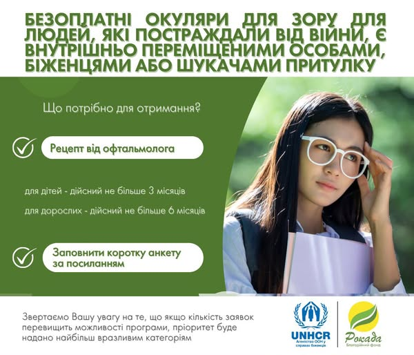 Місце та час видачі окулярів буде повідомлено додатково. Слідкуйте за оновленнями на сторінках громади.