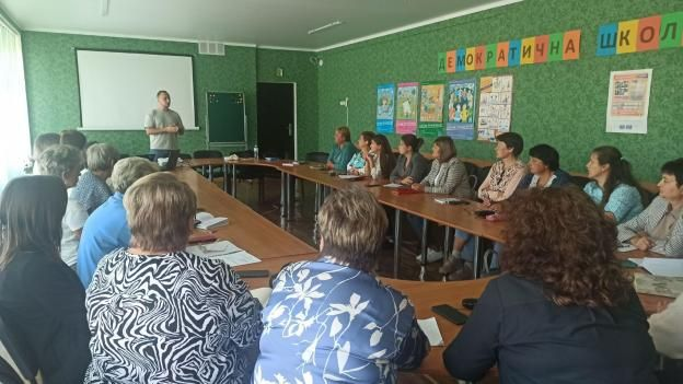 - Учителі суспільно-гуманітарного циклу мали можливість поспілкуватися з Юрієм Захарчуком – учителем історії, керівником освітніх проєктів та програм Освітньої фундації “МрійДій”. Головною темою зустрічі стало використання штучного інтелекту в освітньому процесі та його роль у підвищенні ефективності навчання.