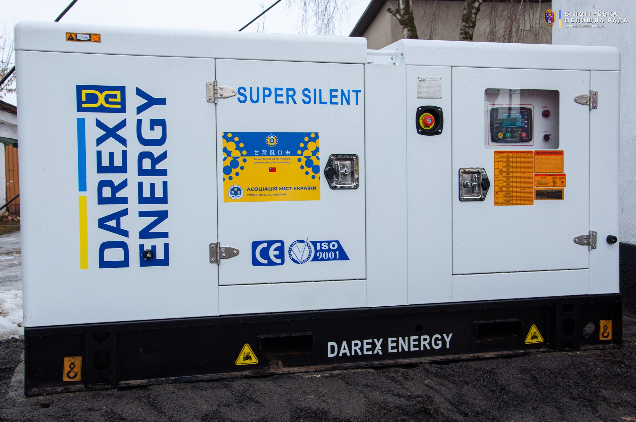 Нещодавно Білогірська громада отримала сучасний дизельний генератор від компанії Darex Energy. Це професійна установка серії Super Silent, що відзначається високою надійністю та зниженим рівнем шуму, що є важливим для її експлуатації у громадському просторі.