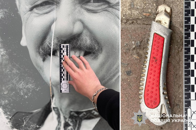 На місце невідкладно виїхала слідчо-оперативна група. Небайдужі громадяни утримували порушника до приїзду поліції.  Поліцейські вилучили канцелярський ніж, яким зловмисник у стані наркотичного сп’яніння порізав портрет. Ним виявився місцевий житель, який раніше уже притягувався до кримінальної відповідальності й перебував на іспитовому терміні.