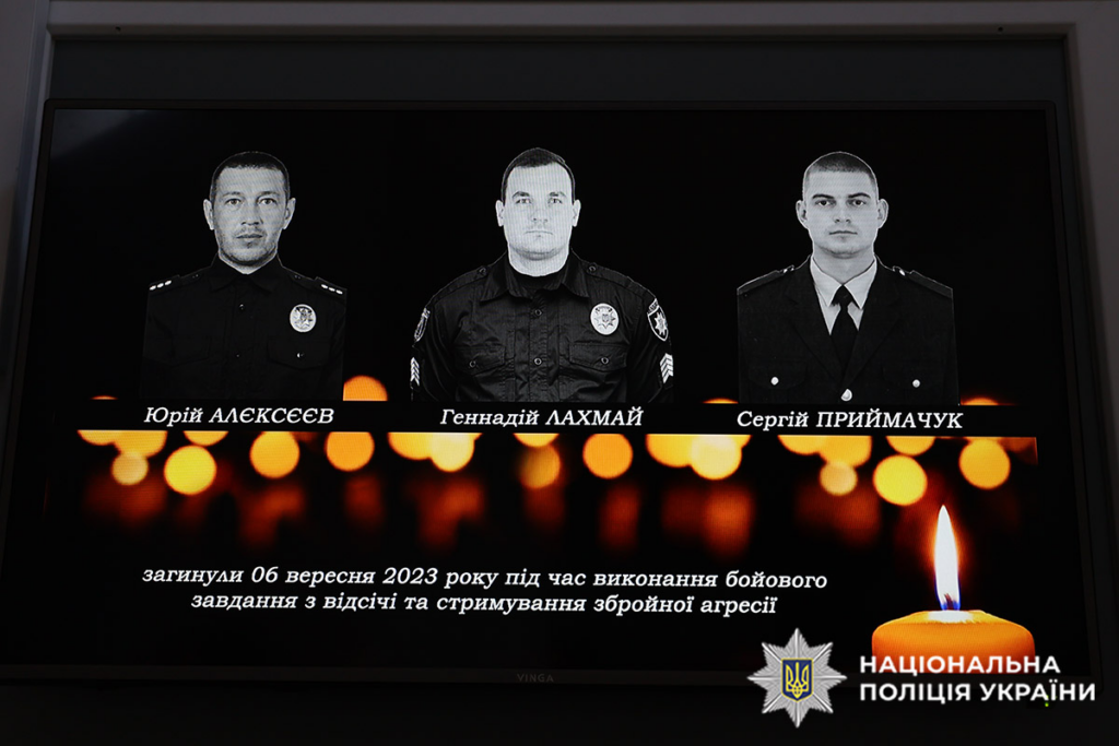 Правоохоронці на Хмельниччині провели поминальну панахиду за Геннадієм Лахмаєм, Сергієм Приймачуком та Юрієм Алєксєєвим — колегами-поліцейськими з об’єднаної штурмової бригади Національної поліції «Лють».
