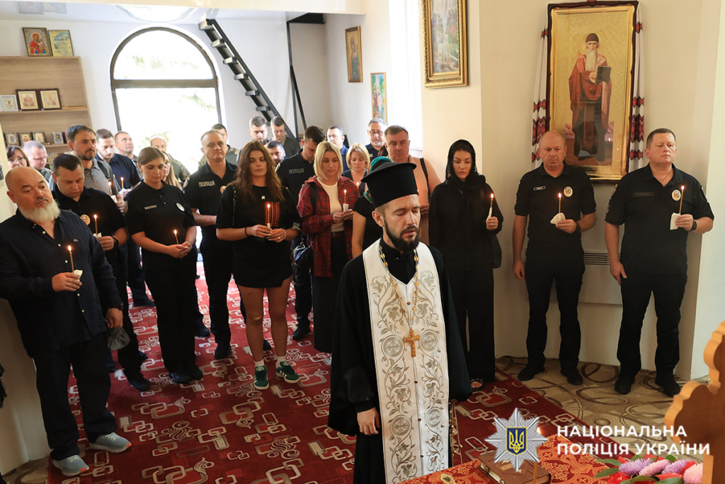 Під час панахиди поліцейські запалили свічки пам’яті, вшановуючи загиблих колег.
