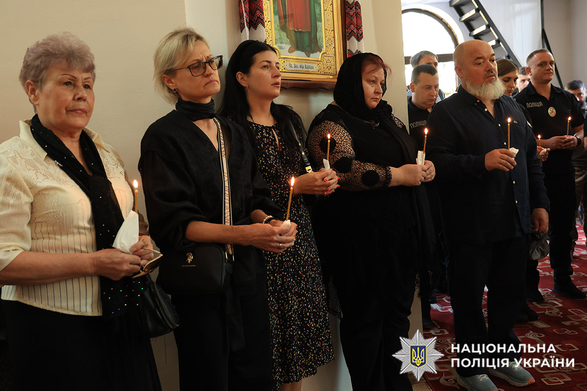 Під час панахиди поліцейські запалили свічки пам’яті, вшановуючи загиблих колег.