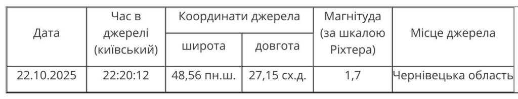 22 жовтня 2025 року фахівці Головного центру спеціального контролю зафіксували землетрус у Чернівецькій області, неподалік села Кормань. Його магнітуда становила 1,7 бала за шкалою Ріхтера, осередок залягав на глибині близько 3 км.