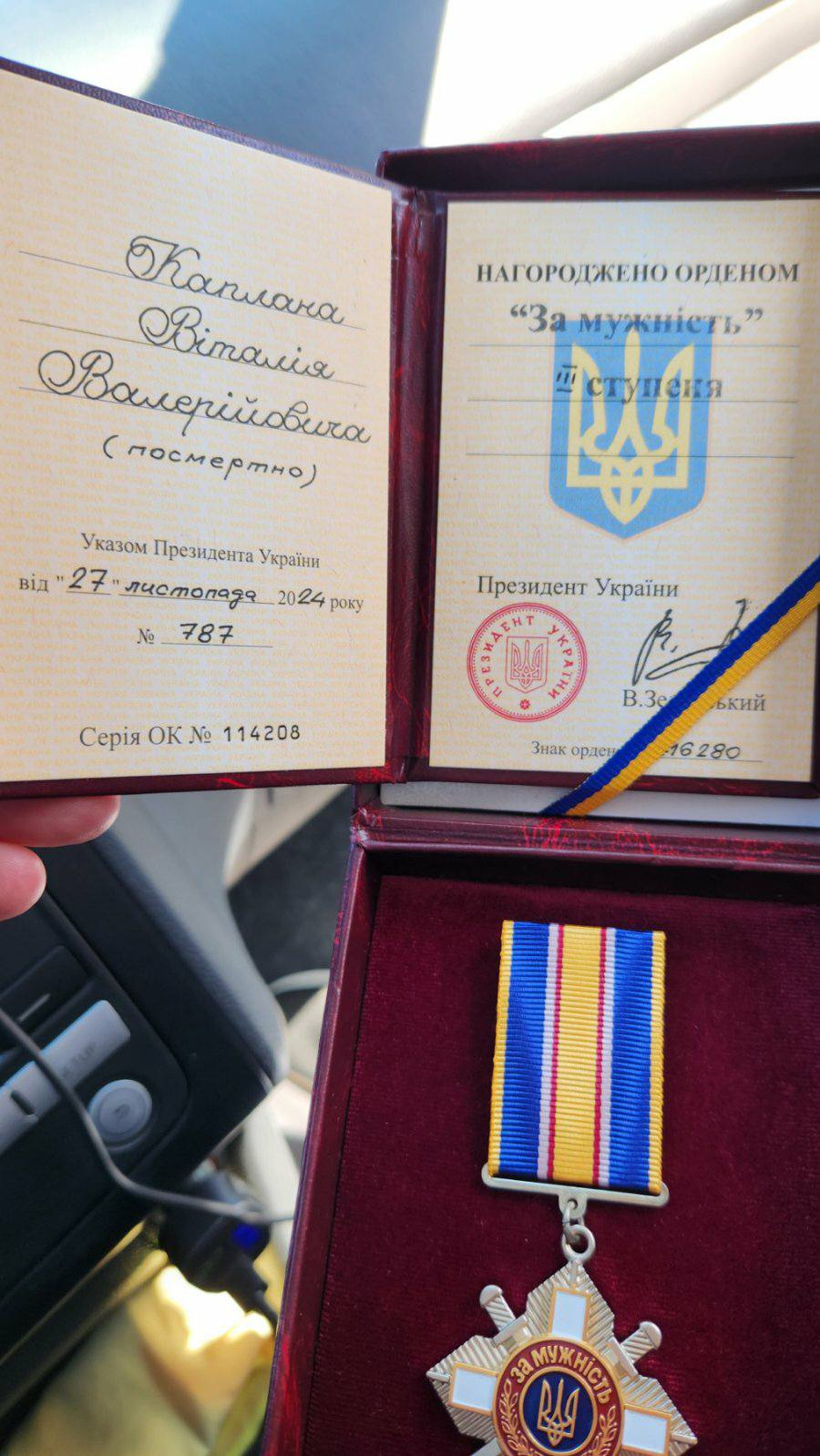 Посмертно Віталій Валерійович Каплан нагороджений орденом «За мужність» III ступеня. Його подвиг назавжди залишиться прикладом відданості та любові до України.
