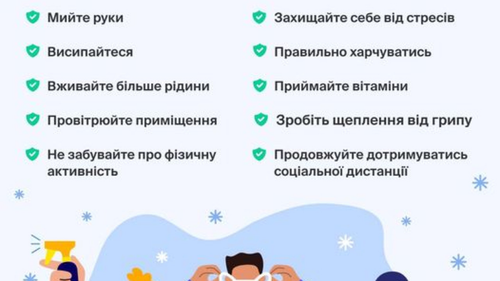 - зміцнюйте імунітет — повноцінно харчуйтеся, більше бувайте на свіжому повітрі, загартовуйтеся;