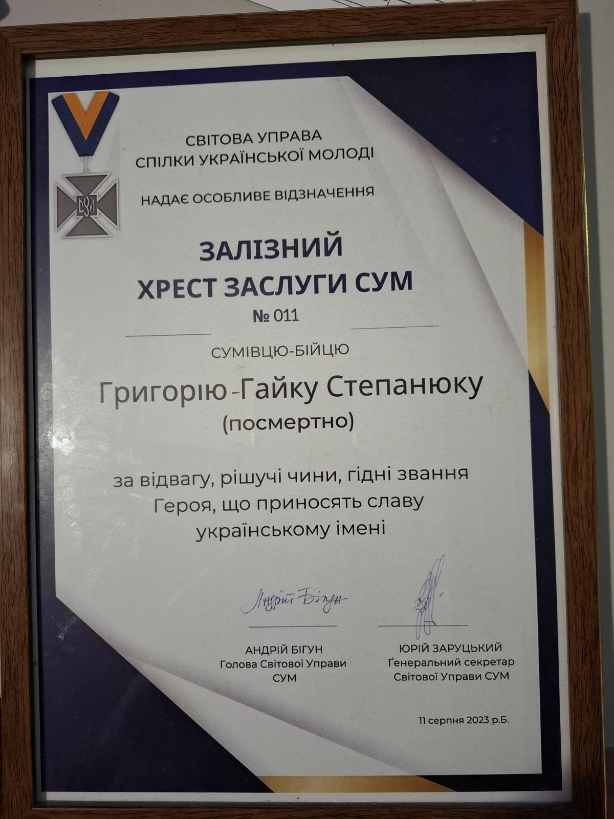 Григорій-Гайк Степанюк є кавалером ордену “За мужність” ІІІ ступеня (посмертно), найвищою сумівською відзнакою за Геройський Чин – Залізним Хрестом Заслуги у серпні 2023 року.