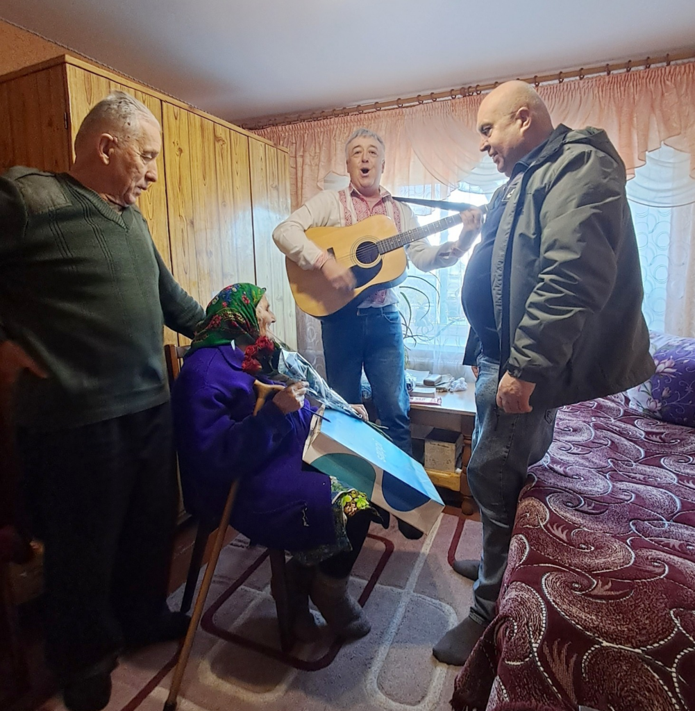 - Довгожительку привітав староста Іван Гаєвський і представник галузі культури, побажавши, щоб ангел-охоронець оберігає від незгод, Господь повсякчас благословляє усіма своїми ласками та щедротами, посилаючи здоров’я, своє благословення та мирне небо над головою!