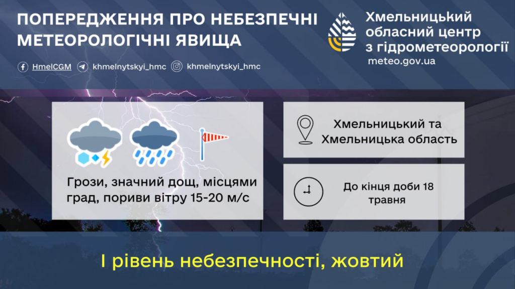 А от сьогодні будьте уважні! Синоптики застерігають мешканців краю – на Хмельниччині прогнозують небезпечні метеорологічні явища.