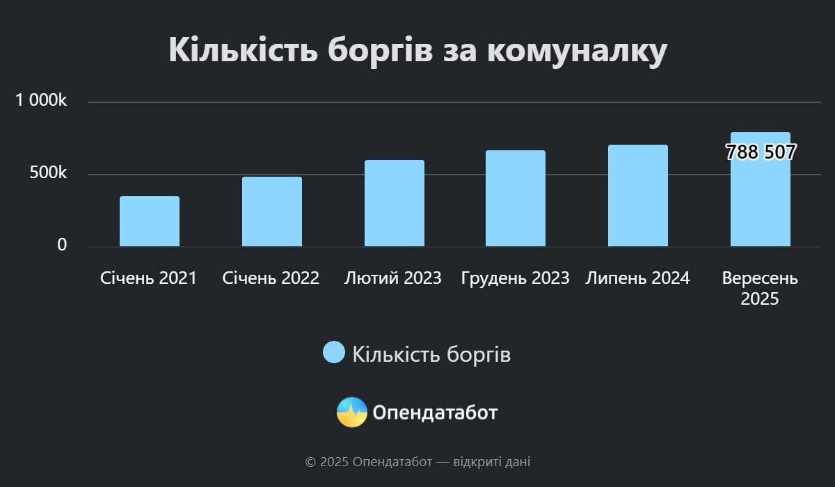 Понад 788 тисяч боргів за комуналку: таку цифру на середину вересня (це рекорд) за даними Єдиного реєстру боржників, називає Опендатабот.