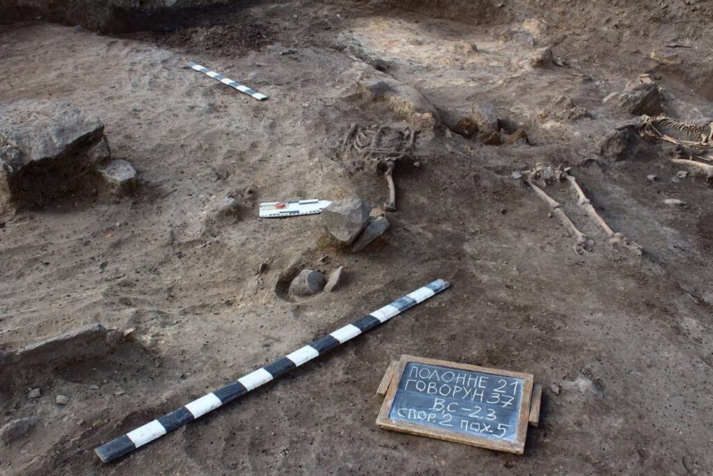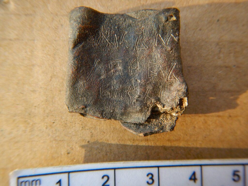 – На території розкопу були виявлені й рештки цвинтаря XIV-XV ст. Сліди іншого, наземного вогнища з фрагментами кераміки і кісток тварин, виявили під похованням. Технічний директор експедиції Дмитро Тимчук знайшов там фрагмент зігнутої свинцевої платівки із залишками напису в три рядки, частина якого досить добре читається. Для атрибуції та прочитання напису ми звернулися до завідувача сектором археологічних досліджень Національного заповідника «Софія Київська» Тимура Бобровського, – додав Нечитайло.