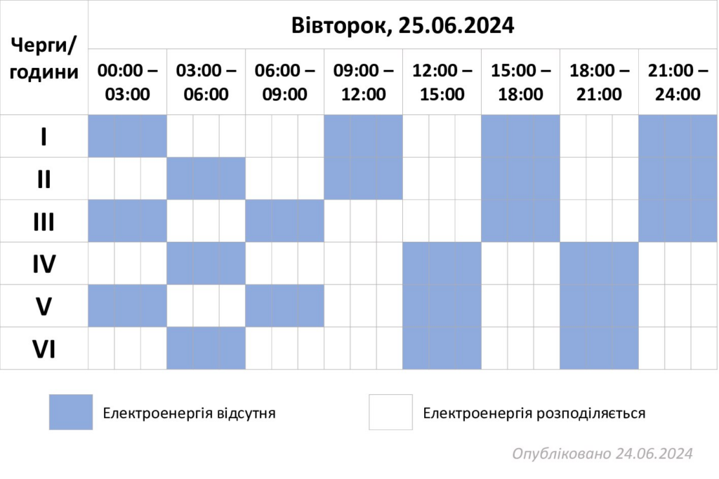 - Відповідно до розпорядження НЕК «Укренерго», відключення триватимуть усю добу, здебільшого, одночасно по три черги.