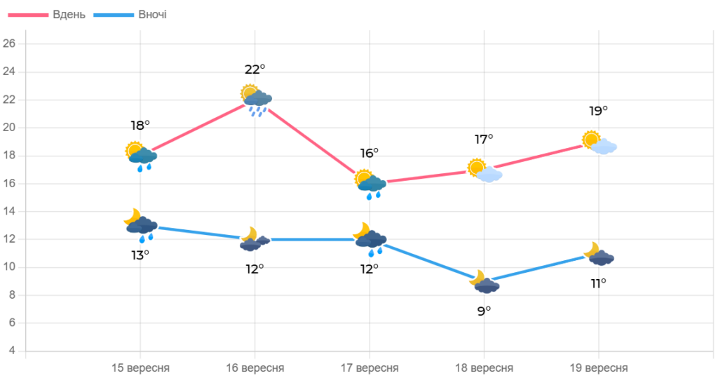 За прогнозом Українського гідрометеорологічного центру хмарна погода та опади триватимуть у нашому регіоні щонайменше до п’ятниці. Тож, майте при собі дощовик і не забувайте затишно одягнутись – найтепліше буде у вівторок, 16 вересня, далі дні стануть осіннішими.