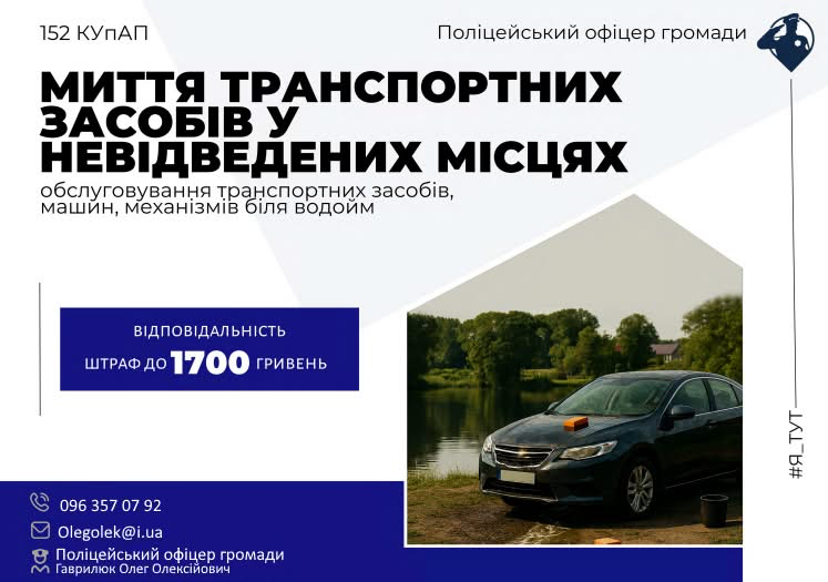 - Обслуговування техніки біля водойм — штраф до 1700 грн.