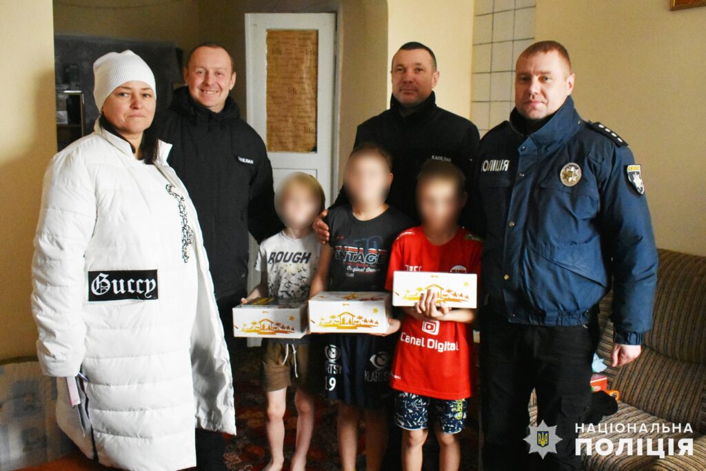 Поліцейські Шепетівського РУП спільно з членами громадської організації «Капеланський патруль» відвідали багатодітні малозабезпечені сім’ї та подарували подарунки.