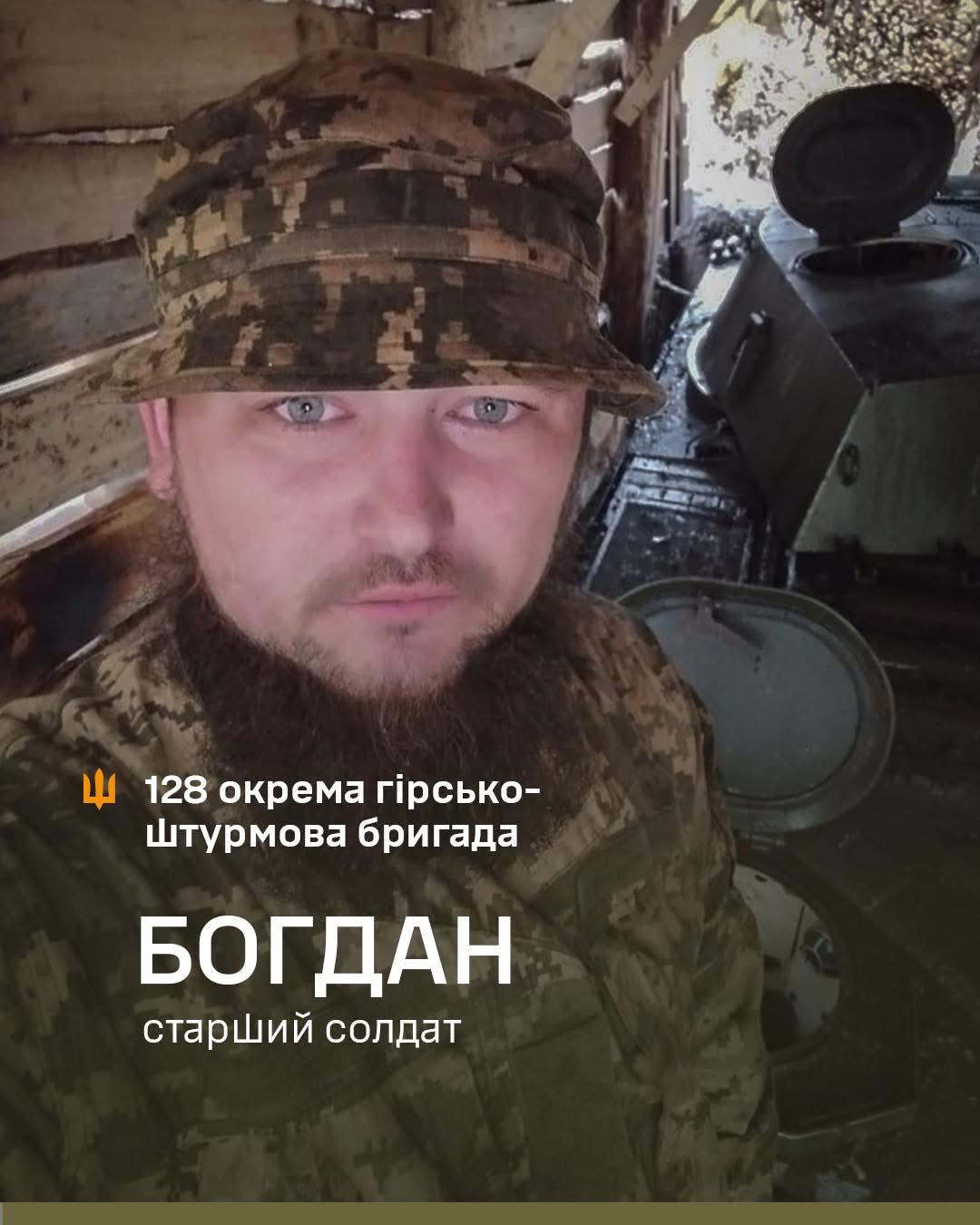 «Я служив навідником кулемета… Під час одного з виходів порвав меніск», — розповідає він. Після операції й реабілітації вдома Богдан перевівся до 128 окремої гірсько-штурмової Закарпатської бригади, куди давно прагнув потрапити. Тут він знайшов сильний колектив та підтримку побратимів.