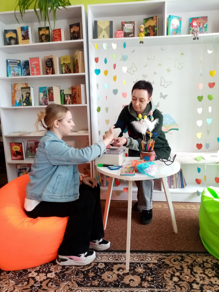Перше, що вас зустріне при вході у бібліотеку – тематична сезонна інсталяція, далі – яскраві зали, які оздобили бібліотекарки. Цілком ймовірно, що Павлина буде готувати виставку, Лариса – плануватиме, або вже втілюватиме новий проєкт чи реорганізовуватиме простір, Оксана – підшукуватиме тренди літератури. А разом ці троє огорнуть вас своєю атмосферою любові до книжки і кожного та кожної, хто увійде у ці двері, аби почитати щось собі до смаку.