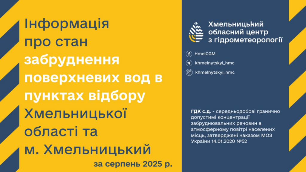 Фахівці Хмельницького обласного центру з гідрометеорології оприлюднили результати серпневого моніторингу стану забруднення поверхневих вод у пунктах відбору області та Хмельницького.