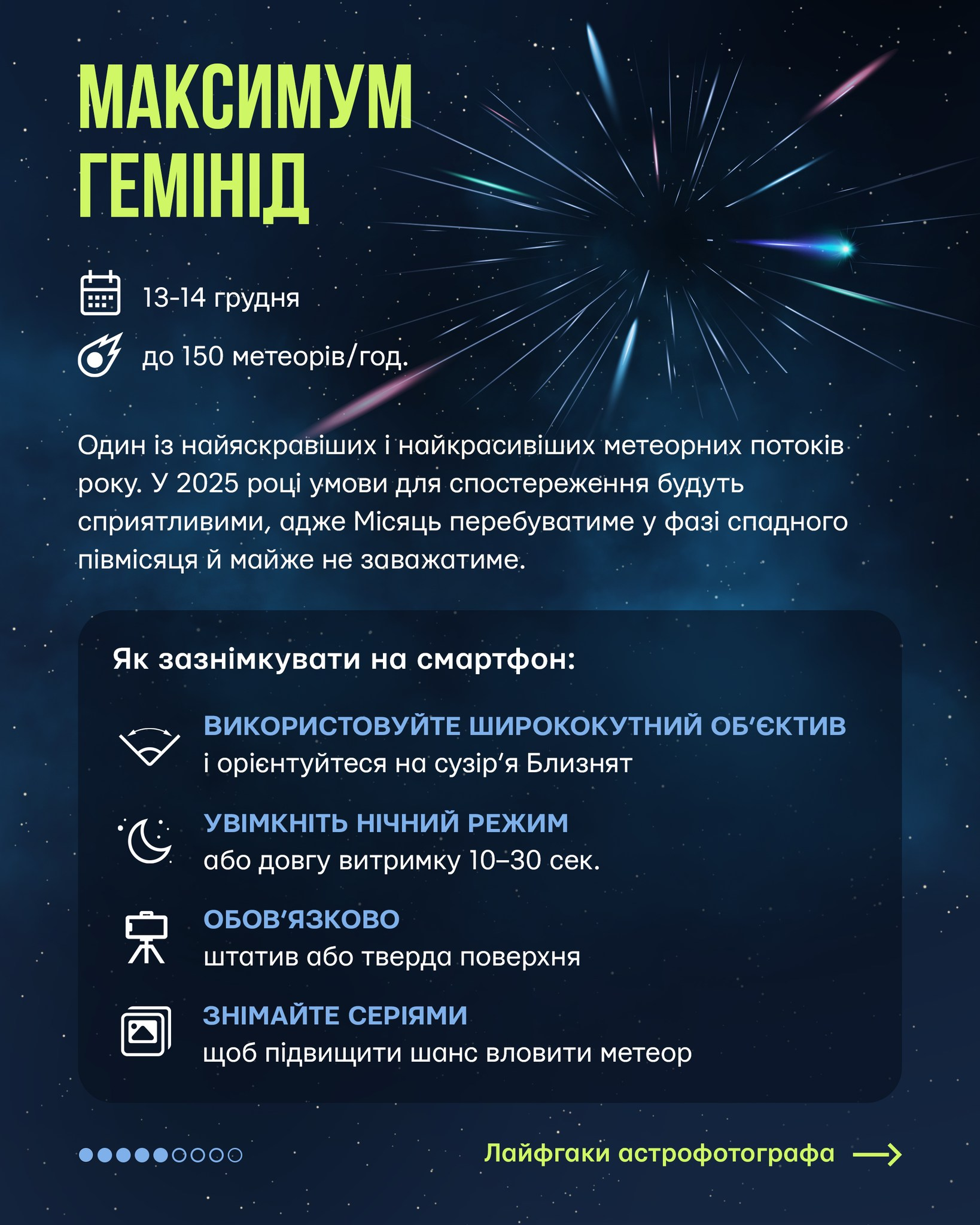 Ними можна помилуватися, ба більше – зняти на свій смарфон. Профільна спільнота науково-популярного медіа Universe Space Tech розповідає про астрономічні події, котрі відбудуться у грудні.