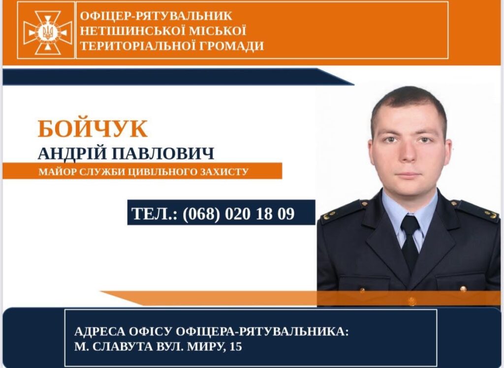 Відтепер у Нетішинській громаді функціонує офіцер-рятувальник — представник Державної служби України з надзвичайних ситуацій, який відповідає за попередження надзвичайних ситуацій, підвищення рівня безпеки та інформованості населення.