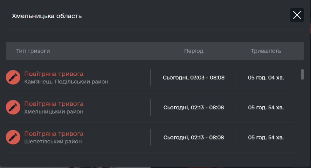 Дрони та ракети цієї ночі випустили росіяни по території України, після 2-ї ранку тривога лунала і на Хмельниччині.