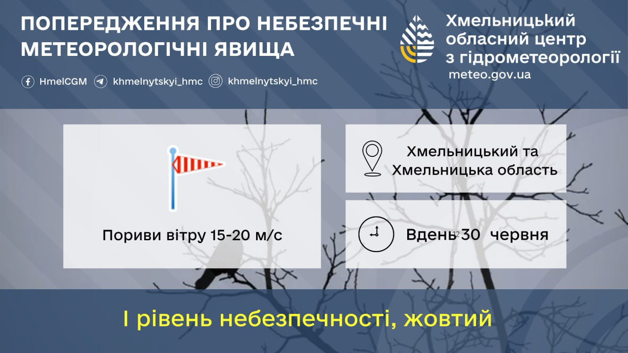 Літня погода “працює” добу через три і сьогодні, 30 червня, на зміну виходить вітер. Стихія буде настільки інтенсивною, що аж небезпечною – про це жителів Хмельниччини попереджують у Хмельницькому обласному центрі з гідрометеорології.